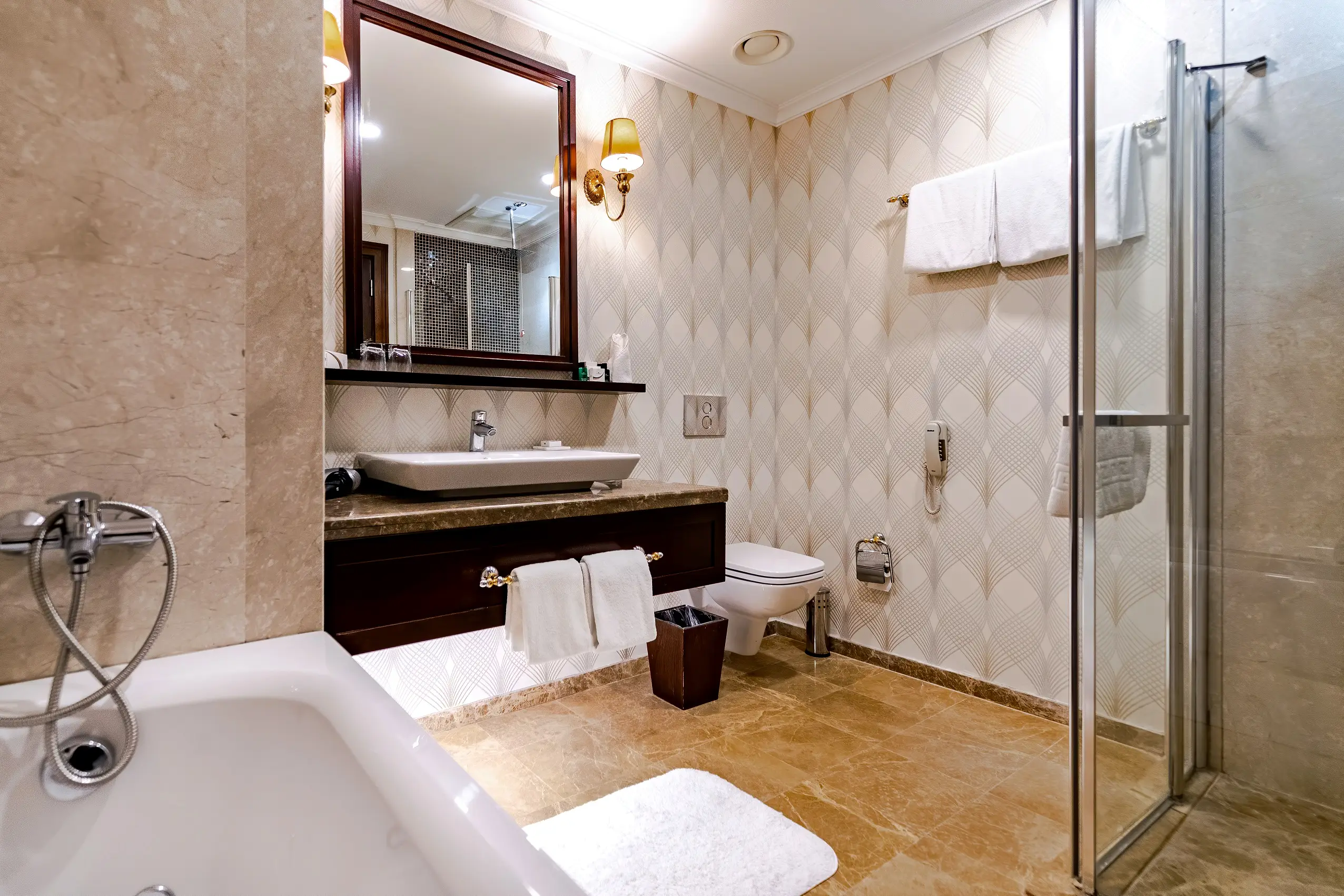 Family Suit odalarımız birbiri ile bağlantılı 1 adet King Suit ve 1 adet Deluxe odadan oluşmakta olup, toplam oda hacmimiz 90 metrekaredir. Mevcut odalarımızda 6 kişiye kadar ağırlama yapılabilmektedir. Family Suit odalarımız, King Suit ve Deluxe odalarımızın tüm özelliklerini bünyesinde barındırmaktadır.